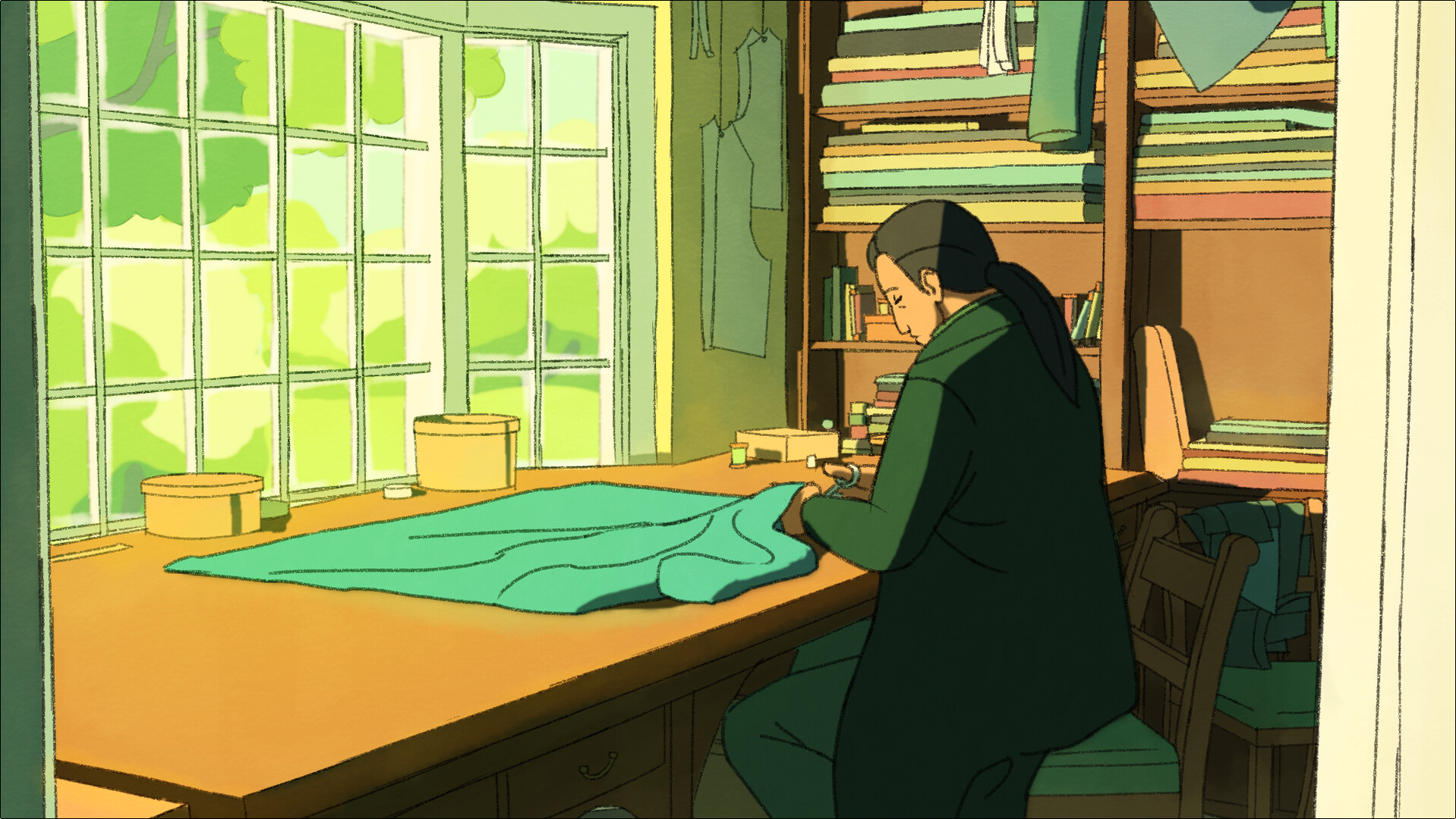 An early 19th century tailor going through the process of making a dress for themselves as a way of coming out to their family.